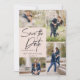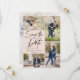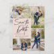 Toma tus 5 mejores imágenes de tu sesión de fotos de compromiso con 4 para el frente y una para el reverso. Presenta un diseño con letras a mano que dice Guardar la fecha.
