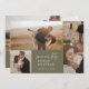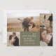 Este moderno collage de fotos de moda verde oliva, salvo la tarjeta de fecha, es perfecto para un boda sencillo. El diseño de boho en madera presenta una tipografía bohemia rústica única y elegante con un color verde de bosque mínimo. Personalice su tarjeta con 5 fotos de compromiso, sus nombres, fecha de boda y dirección del sitio web del boda. Incluya un código QR para que sus huéspedes puedan escanearlo fácilmente para obtener más información boda.