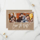 Tarjeta de anuncio de compromiso de pareja con letra de pincel moderna y 3 fotos Save The Date en papel kraft