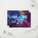 Para la pareja cuya historia de amor está escrita entre las estrellas...una boda con temática galaxia, salvo que las tarjetas de fecha atraigan la atención de todos. Los detalles del texto son personalizable y están sobre un fondo espacial en color morado, rosa, azul, amarillo y blanco