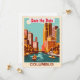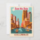 tarjeta de invitación de guardar la fecha de Columbus en colores naranja y verde.