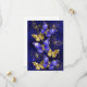 Composición de lujosas mariposas de zafiro y joyas de oro sobre fondo de textura azul.