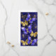 Composición de lujosas mariposas de zafiro y joyas de oro sobre fondo de textura azul.