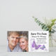 Este elegante diseño "salven la fecha" de mariposas color agua, malva, lavanda y lila, ambientadas en un remolino floral gris plateado, tiene plantillas de texto para la redacción personalizado. PERSONALIZAR IT - Añade tu fotografía romántica y cambia la redacción para que se adapte a tu evento. IDEAL PARA - Cualquier pareja que esté celebrando un aniversario, compromiso, boda, renovación de votos o un hito especial en su relación.