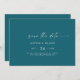 Esta moderna coordenada de acuarela horizontal verde azulada ahorra la tarjeta de fecha es perfecta para un boda contemporáneo elegante. El sencillo diseño azul, verde y blanco, presenta una tipografía industrial única con un estilo boho moderno. Personalizable de cualquier color. Mantenga el diseño minimalista y elegante, tal como está, o lo personalice añadiendo sus propios gráficos y obras de arte.