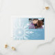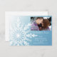 Personalizar el festivo Copo de nieve blanco en la Boda Azul de Invierno de Hielo Salve la tarjeta de anuncio de fecha con los nombres personales de la pareja, foto y fecha de ceremonia de matrimonio para anunciar sus nupcias temáticas de diciembre, enero o febrero de invierno. Este elegante matrimonio personalizado en invierno mantiene la tarjeta de fecha con un intrincado copo de nieve blanco adornando la esquina con un fondo azul claro degradado.