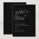 Tarjeta de Guardar la Fecha (Negro con Texto Blanco): Esta tarjeta moderna y elegante para guardar la fecha de la boda presenta un fondo negro elegante con texto blanco simple y un corazón encantador dibujado a mano. Su diseño minimalista emana sofisticación, lo que la convierte en la forma perfecta de anunciar su día especial con estilo y gracia. Ideal para parejas que buscan un toque refinado y atemporal para su papelería de boda.