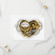 Corazón mecánico, volumétrico, de vapor punk con manómetro de presión, acero y engranajes dorados sobre fondo blanco. Estilo Steampunk.
