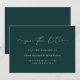 Estas sencillas y elegantes tarjetas de guardar la fecha de la boda de color verde oscuro teal presentan una tipografía de escritura a mano blanca de moda, con corazones caprichosos como parte de la tipografía. Agregue la información de su boda para completar este estilo elegante y minimalista.