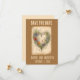 Esta hermosa tarjeta de "Save the Date" presenta una ilustración de una corona en forma de corazón hecha de enredaderas, flores y un corazón. Encima de ella, dice "Save the Date" y debajo están los nombres y la fecha del evento. El texto es editable, así que adelante, cambia los detalles, así como el estilo de fuente, color y tamaño. Los colores de fondo en ambos lados de la tarjeta también se pueden cambiar.