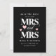 Tarjeta de "save the date" de boda con tipografía romántica en negro para una boda lésbica con las futuras SRA y SRA escritas en letras blancas en negrita con una "y" enroscada y corazones rosados. Tarjeta de "save the date" lésbica con tipografía con "save the date" para las futuras Sras. & Sras. en un diseño negro, rosa y blanco en un diseño limpio y romántico. Envía tus "save the date" con esta tarjeta de "save the date" de boda lésbica en negro, rosa y blanco personalizada con tus nombres y detalles de la boda pero sin foto.