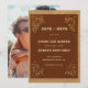 Delicate floral corner accents echo the intricate leatherwork of the main invitation while keeping the design clean and understated for a modern rustic feel. On the back, a full photo template allows you to showcase your favorite engagement picture, adding a personal touch your guests will love.