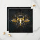 Dibujado artísticamente, simétrico, composición de negro y oro, alas de pájaro, dorado, cráneo de pájaro decorado con motivos dorados sobre fondo oscuro, texturado.Estilo gótico