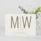 La boda con crema de monograma grande salva la fecha. Contemporáneo, moderno. Sleek. Texto dorado.