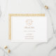 Los detalles ornamentales barrocos le dan a esta invitación de boda para guardar la fecha un sabor a viejo mundo que es de naturaleza romántica y nostálgica. Los colores incluyen amarillo dorado, beige y marrón oscuro. La parte posterior tiene un hermoso patrón coordinado. Personalice esta invitación con sus iniciales dentro del escudo en la parte superior. Puede encontrar productos coordinados en mi colección Sacred Heart Sweetheart.