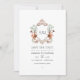Tarjeta de aviso de boda con acuarela con una caprichosa cresta temática de bosque que se puede personalizar con las iniciales de la persona celebrada.
