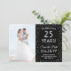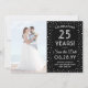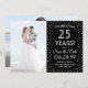 Invitar a la familia y amigos a una próxima celebración de aniversario con este personalizado 5x7 2 foto azul marino y gris plateado, guardar la tarjeta de anuncio de fecha. (IMAGEN PLACEMENT TIP: Una manera fácil de centrar una foto exactamente como quieres es recortarla antes de subirla al sitio web de Zazzle.) El diseño presenta dos imágenes de su elección, caligrafía de escritura moderna, tipografía de estilo Art Déco de estilo vintage y puntos de confeti de Relieve metalizado plateado sobre un fondo azul marino. Tenga en cuenta que el texto es de color impreso gris y blanco, no de Relieve metalizado metálico. Esta tarjeta de invitación está configurada para un 25º aniversario del boda, pero es simple para el personalizar para cualquier año o tipo de evento. Si hay algún texto no deseado, simplemente elimínelo.