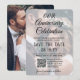 Anuncia las alegres noticias de tu aniversario próximo con únicas invitaciones de guardar la fecha con superposición de fotos personalizadas. Las 2 imágenes, el código QR escaneable y todo el texto en esta plantilla de invitación son fáciles de personalizar para cualquier aniversario de bodas. (CONSEJO DE COLOCACIÓN DE IMAGEN: Una forma fácil de centrar una foto exactamente como la deseas es recortarla antes de subirla al sitio web de Zazzle.) Personalízala para cualquier tipo de celebración de matrimonio, como una ceremonia de renovación de votos, boda secuela, recepción de cóctel o cena. También puedes incluir todos los detalles importantes, como la fecha del matrimonio, la ubicación y el sitio web. El diseño moderno en blanco y negro presenta 2 imágenes de tu elección, caligrafía elegante y tipografía de máquina de escribir con estilo. Al escanear el código QR con sus teléfonos, los invitados son enviados directamente al sitio web de la boda donde pueden ver todos los detalles importantes y conectarse contigo en línea. Esta tarjeta de nota de anuncio elegante es una forma elegante de informar a amigos y familiares de la celebración de tu día especial próximo. ¡Felicitaciones a la pareja en su celebración de aniversario!