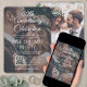 Anuncia las alegres noticias de tu fiesta posterior al escape con la exclusiva superposición de fotos personalizadas "¡Nos decimos sí, nos escapamos!" en las invitaciones de "guarda la fecha". Las 2 imágenes, el código QR escaneable y todo el texto en esta plantilla de invitación son fáciles de personalizar. (CONSEJO PARA COLOCAR IMÁGENES: una forma fácil de centrar una foto exactamente como la deseas es recortarla antes de subirla al sitio web de Zazzle). Personalízala para cualquier tipo de celebración, como una recepción de boda solamente, una ceremonia de renovación de votos, una boda secuela o una fiesta de aniversario. Incluye la fecha de la boda, la ubicación, el sitio web o cualquier otro detalle importante que desees. El elegante diseño en blanco y negro presenta dos imágenes de la pareja recién casada, una caligrafía moderna y trendy con letra manuscrita, y una tipografía elegante de máquina de escribir. Al escanear el código QR con sus teléfonos, los invitados son enviados directamente al sitio web de la boda donde pueden ver todos los detalles importantes y conectarse contigo en línea. Esta tarjeta de nota de anuncio es una forma elegante de informar a amigos y familiares de tu