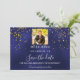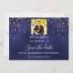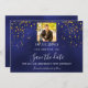 Reserva La Fecha Cumpleaños con foto de confeti dorado azul marino