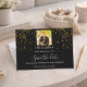 Una tarjeta Save the Date para una fiesta de cumpleaños número 50 (o cualquier edad). Un fondo negro. Decorada con confeti dorado. El texto: Save the Date se escribe con un gran guión de estilo escrito a mano. Personalice y agregue una foto.