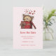 Reserva La Fecha Cute Cartoon Kitten in a Box with Hearts Birthday