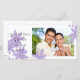Establece el tono para tus próximos nupcias con la elegante tarjeta de fotos de la boda blanca Guardar la tarjeta de fotos de la fecha. Personalizar con los nombres personales de la novia y el novio, fecha específica de la ceremonia matrimonial y foto personal de la pareja. Este elegante boda personalizado florido conserva la tarjeta fotográfica de fecha con flores de margarita de color lavanda adornando las esquinas con un fondo blanco.