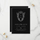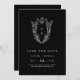 Esta boda formal formal clásica negra y formal, que salva la fecha de la Colección Daphne, es perfecta para un boda tradicional. El diseño es sencillo pero sofisticado y cuenta con un elegante y atemporal monograma de escudo vintage con flores y vegetación alrededor de las iniciales de la pareja.