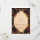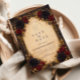 A bold and dramatic design inspired by gothic romance and baroque opulence, featuring deep crimson roses, black dahlias, and rich golden foliage woven into an ornate antique frame. The warm parchment center glows against the dark, moody background, creating a striking contrast that feels both luxurious and timeless. Intricate details and layered florals add depth and intensity, making this design perfect for an unforgettable evening celebration filled with elegance, mystery, and old-world charm.