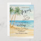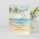 Una elegante Boda Ahorre la tarjeta de fecha con la playa de acuarela y palmeras que puede personalizar con sus detalles.