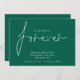 Decidimos por Forever Emerald Green Save The Date (Salvar la fecha). Disponible digitalmente e impreso. Elegante diseño de tipografía para invitar a sus huéspedes a guardar su cita. Decidimos por Forever que está en un elegante guión está en el centro. El resto del texto que puede personalizar fácilmente. Los colores del texto y del fondo pueden cambiarse si desea adaptarse mejor a su tema boda a través de la opción personalizar.