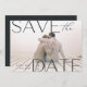 Anuncie la fecha de su boda con un estilo inolvidable con esta elegante y moderna foto ahorre las tarjetas de fecha, con una foto horizontal o orientada al paisaje de sangrado completo con "guardar la fecha" colocada en las esquinas con letras negras suaves. Su fecha de boda aparece dentro de la letra D, junto con sus nombres y ubicación de boda. Personalice la parte posterior con detalles adicionales, como su sitio web boda.