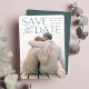 Anuncie la fecha de su boda con un estilo inolvidable con esta elegante y moderna foto salve las tarjetas de fecha, con una foto vertical de sangre completa o orientada a retratos con "salva la fecha" colocada en la parte superior con una rica letra verde oscuro. Los nombres, la fecha de boda y la ubicación del boda aparecen junto con las letras modernas. Personalice la parte posterior con detalles adicionales, como su sitio web boda.