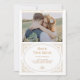 Estas glamurosas tarjetas de aviso de boda presentan un giro moderno en el art déco clásico. Un marco geométrico de falso oro ornamentado y ornamentación decoran un elegante fondo blanco con tu foto personal favorita para un look de boda dramático y vintage.