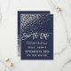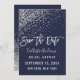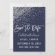 Esta elegante y glamurosa invitación de "Save the Date" para Despedida de Soltera es un diseño moderno y elegante que presenta un brillo plateado de lentejuelas con estampado falso de niña, confeti abstracto con gradiente ombre sobre un fondo azul marino. Es perfecto para la novia moderna y elegante con su impresión simple y bonita y tipografía personalizada con pinceladas blancas artísticas. Personalice el color del texto y del fondo haciendo clic en el botón "personalizar".