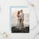 If you're engaged and planning a destination wedding, this is the save the date for you. For a fun and playful couple - with a bit of a classic and elegant side too - this one photo vertical save the date sets the tone for your big day getaway. With simple white text that reads "save the date for our big day getaway," this card also includes ample space for the couple's names, the dates, the location and any other pertinent information like a wedding website. The back is a soft shade of sky blue with a speckled pattern, but the color can be changed by clicking customize then clicking the plus sign on background color. Coordinating wedding invitations and accessories with the big day getaway theme are also available.