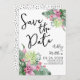 Un diseño tropical que abraza la belleza tranquila de la naturaleza mezclada con un toque juguetón que seguramente te hará divertirte. Una mezcla de calmantes hojas verdes tropicales, incluyendo hojas de plátano, palmas, hojas de monstera y plantas de princesa rosa, junto con flores de orquídea púrpura-rosa y flor de protea, entrelazadas con varias otras foliaciones. Añadiendo un elemento de diversión, un fondo negro de 'punto desordenado' o 'punto dálmata' en la parte posterior infunde el diseño con un toque juguetón (puedes quitarlo si lo deseas). Mejorado por una fuente manuscrita moderna, esta impresión encantadora irradia encanto y sofisticación. Este diseño versátil trae un sentido de paraíso tropical a cualquier entorno u ocasión especial, lo que lo hace perfecto para una boda de destino, o simplemente cuando deseas agregar un toque tropical. Boda floral tropical acuarela palma verde rosa Guarde la fecha.