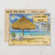 Este "Destination Paradise" (Destino al Paraíso), tarjeta de Save the Date (Guarda la Fecha) de dos caras está hecho de una hermosa obra de arte coloreada a mano con agua por Audrey Jeanne Roberts. Cuenta con exquisitamente detalladas Hojas de Hierba Palappa con sillas adirondak y toallas de playa en la playa con un océano tropical lamiendo la arena. Hay un matasellos con su fecha y ubicación de destino en un borde envejecido, sucio y vintage. La paleta de colores es azul aqua, bronceado, crema y marrón. También disponible con un fondo verde suave musgo, verde más oscuro y un fondo azul aqua más oscuro. Esta tarjeta de Save the Date se puede personalizar fácilmente. TAMBIÉN PODRÍAS DISFRUTAR: INVITACIONES DE BODA: