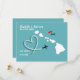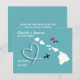 Un divertido aviso de guardar la fecha para parejas que se casan en Hawái con un mapa de silueta blanca sobre teal con dulces corazones de amor rojos y muy fácil de personalizar con sus nombres y mensaje personal