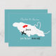 Un divertido aviso de guardar la fecha para parejas que se casan en Jamaica, con un mapa de silueta blanca de Jamaica en azul turquesa con corazones de amor rojos dulces y muy fácil de personalizar con tus nombres y mensaje personales