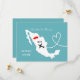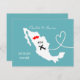 Un divertido guardar la fecha para parejas que se casan en México, con un mapa de silueta blanca de Jamaica en azul turquesa con dulces corazones de amor rojos y muy fácil de personalizar con sus nombres y mensaje personal