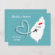Un divertido aviso de guardar la fecha para parejas que se casan en San Lucia, con un mapa de silueta blanca sobre fondo teal con dulces corazones de amor rojos y muy fácil de personalizar con tus nombres y mensaje