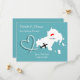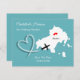 Un divertido aviso de guardar la fecha para parejas que se casan en Skiathos con un mapa de silueta blanca sobre verde azulado con dulces corazones de amor rojos y muy fácil de personalizar con tus nombres y mensaje