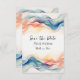 Un audaz y moderno anuncio de boda "Save The Date" diseñado en colores abstractos brillantes. El texto incluye: Save the Date, los nombres de la novia y el novio y la fecha de la boda. El reverso también está decorado con colores abstractos brillantes y ondulados e incluye el texto: Detalles a seguir y su sitio web de boda. Para personalizar, simplemente inserte sus datos en nuestra fácil plantilla, reemplazando el texto de muestra. Asegúrese de ver toda la colección de diseños de boda modernos y coloridos para tarjetas y accesorios a juego.