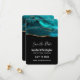 La boda guarda la tarjeta de fecha con un diseño de estilo abstracto. Ilustracion de piedra de ágata verde azulada con capas de diferentes matices. Una cinta purpurina de oro falso recorre las capas de color.