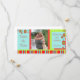 Boda Engagement Fun Divertido con Poppies! Colorida tarjeta de foto de personalizable en azul acuático, adornos rojos naranjas y verde brillante de primavera con acento rayado. Puedes personalizar con tu propia foto e información de fecha boda para hacer tu propia invitación personalizada y a la moda. Parte de la colección de diversión de la amapola por expresiones de papel