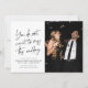 ¡No te querrás perder esta boda! Prepara a tus invitados para pasar un buen rato con este divertido diseño de dos fotos para "save the date". Con una fuente de letra de moda en negro sobre fondo blanco, este "save the date" también incluye una foto en la parte delantera y mucho espacio para texto personalizado. La parte trasera negra tiene una segunda foto junto con un código QR y un mensaje personalizado donde puedes incluir el sitio web de tu boda u otra información. Establece el tono para la mejor boda de todas con este original diseño de "save the date" de Lea Delaveris Design. También está disponible como archivo digital para descargar.