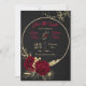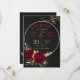 flores burdeos románticas elegantes y hojas de oro en el círculo dorado negro salva la invitación a la fecha Los detalles del purpurina se simulan