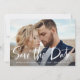 Esta caprichosa y elegante tarjeta de aviso de boda presenta dos de tus fotos personales favoritas, con una moderna letra manuscrita blanca en la parte delantera, y toda la información de tu boda en la parte trasera. ¡Un aspecto simple y moderno que se ajustará perfectamente a tu estilo!