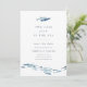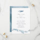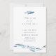Nuestro verano de la moda costera salva las fechas con un par de besos de peces de color azul rompiendo filas con una escuela de peces más pequeños a lo largo del fondo. "Dos menos peces en el mar" aparece con elegantes letras azul marino, con tu boda salvo los detalles de la fecha debajo.